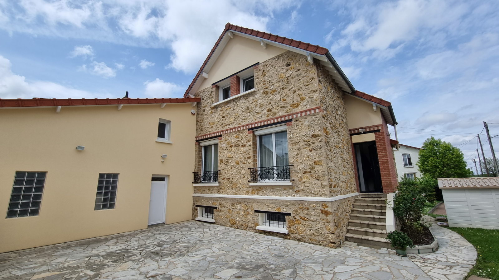 ACTIMMO CONSEIL vous propose à YERRES une jolie maison meulière de 135m² (200m² utiles) située proche toutes commodités (GARE, écoles, commerces et forêt) vous offrant au rez-de-chaussée une entrée, une belle pièce à vivre de 37m², un salon donnant accès sur la terrasse, une cuisine aménagée, une salle à manger (accès terrasse) et wc. A l'étage, dans l'extention, une chambre avec mezzanine, une salle d'eau avec wc et bureau (poss petite chambre). A l'étage de la partie d'origine en meulière : palier desservant une salle d'eau avec wc, 2 chambres dont une avec salle d'eau privative. Sous-sol spacieux aménagé en lingerie, une chambre avec penderie, salle d'eau avec wc, buanderie, chaufferie et grand bureau. Beau terrain de 566m² avec terrasse et terrain de pétanque ! Un garage et 2/3 places de stationnement extérieur devant la maison complètent le tout . DPE : D (162) ; GES : D (33).Très bon état général (chaudière gaz à condensation de 2023, double vitrage, volets électriques...). Beau potentiel. A voir !